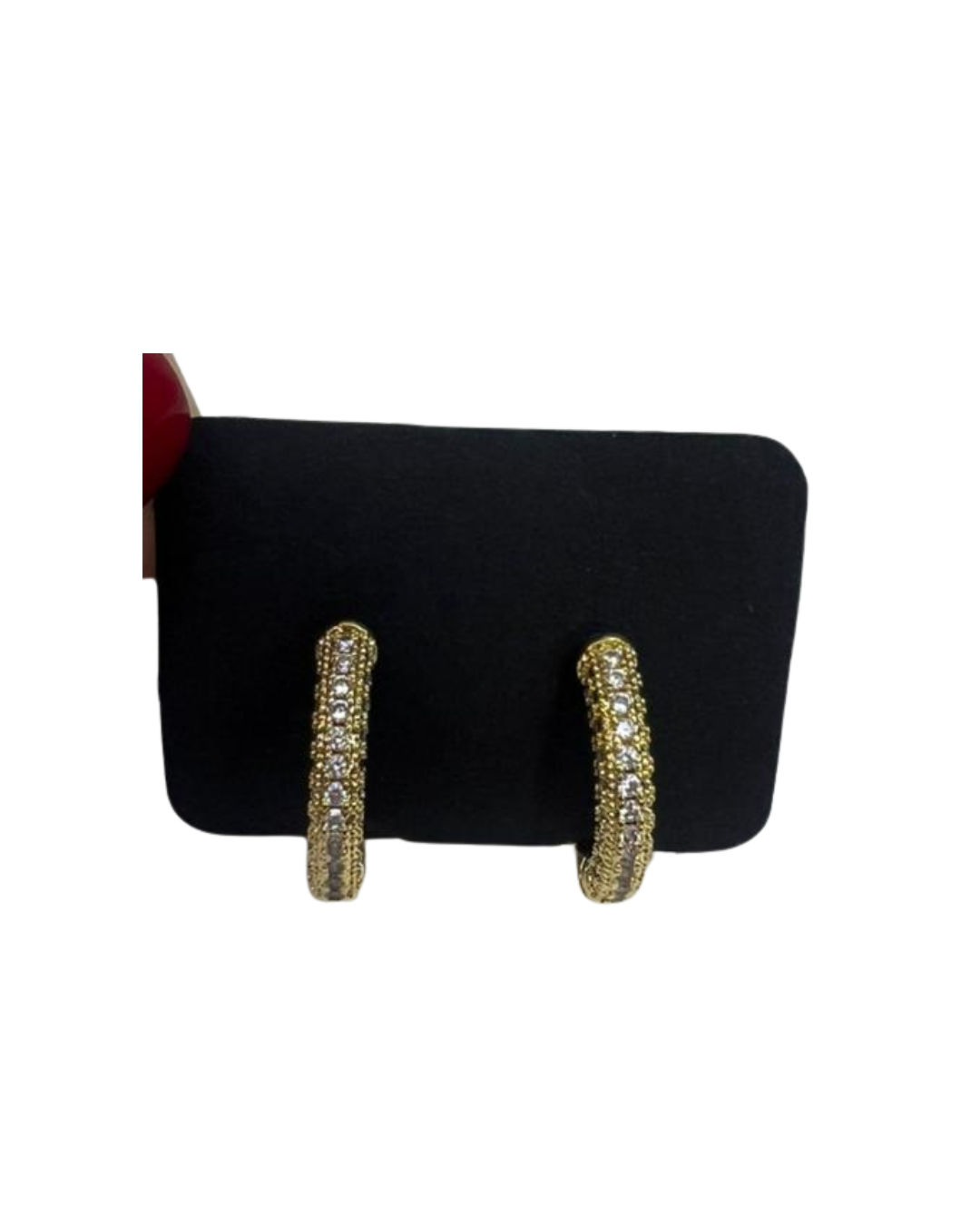 Las Candongas Huggie son el pendiente que usarás sin parar. Este diseño de arracada pequeña que abraza el lóbulo de la oreja (huggie) combina a la perfección la elegancia del pavé de cristales con una textura dorada de alto impacto. Son un básico elevado que te acompaña con un lujo sutil pero perceptible, desde la mañana hasta la noche.
