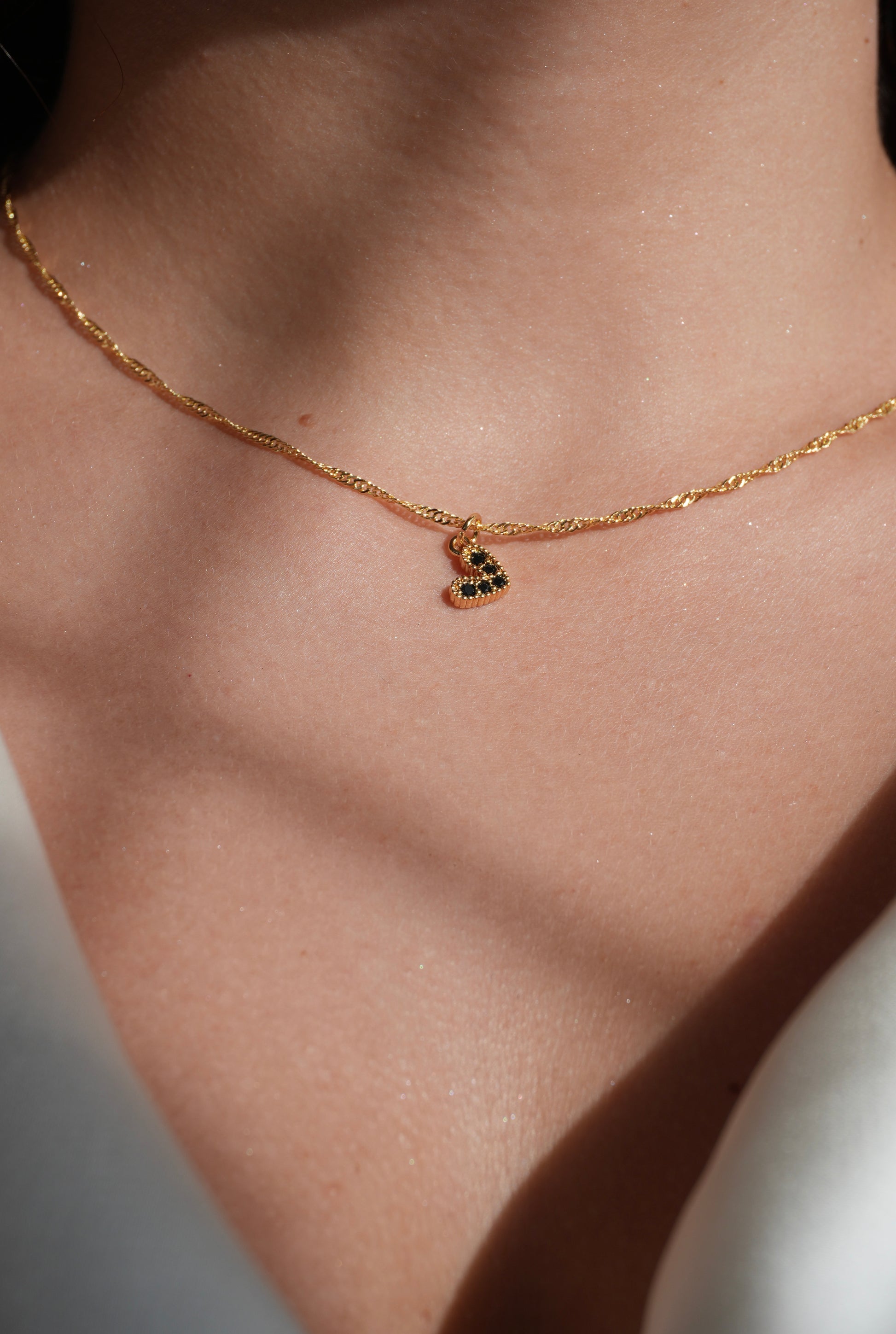 Nuestro Collar Coeur Noir redefine el clásico símbolo del amor con un diseño vanguardista y sumamente "chic". Está elaborado sobre una deslumbrante cadena dorada estilo torsal (Singapore), famosa por sus eslabones entrelazados que aportan una textura lujosa y destellos continuos con cada uno de tus movimientos.